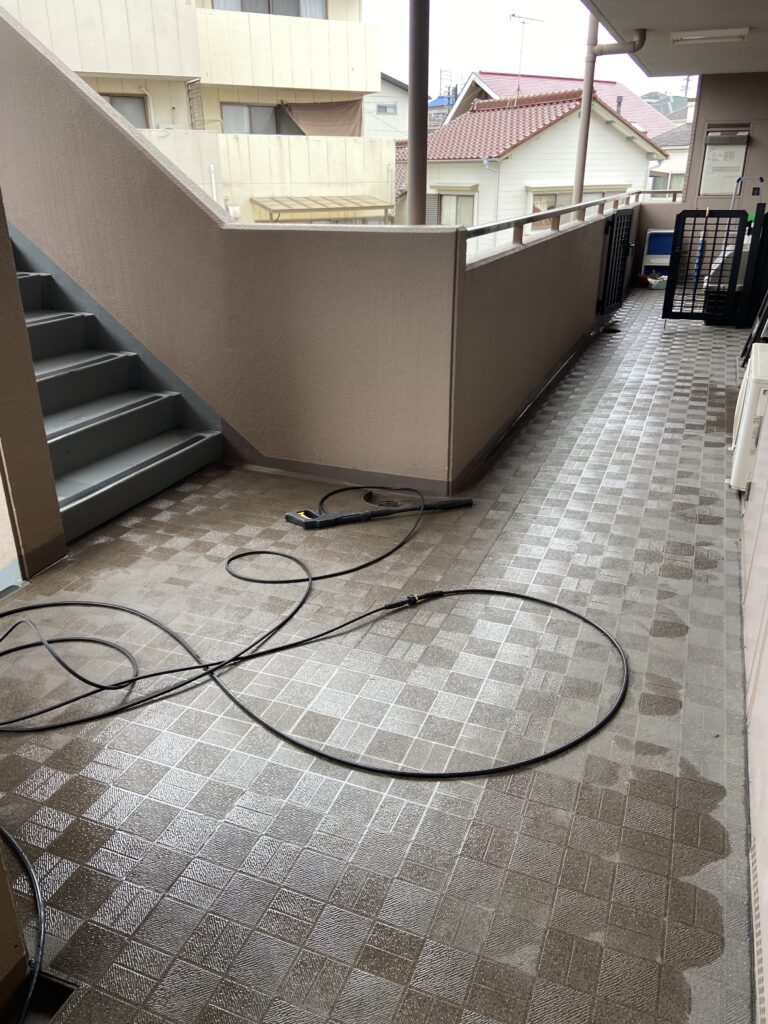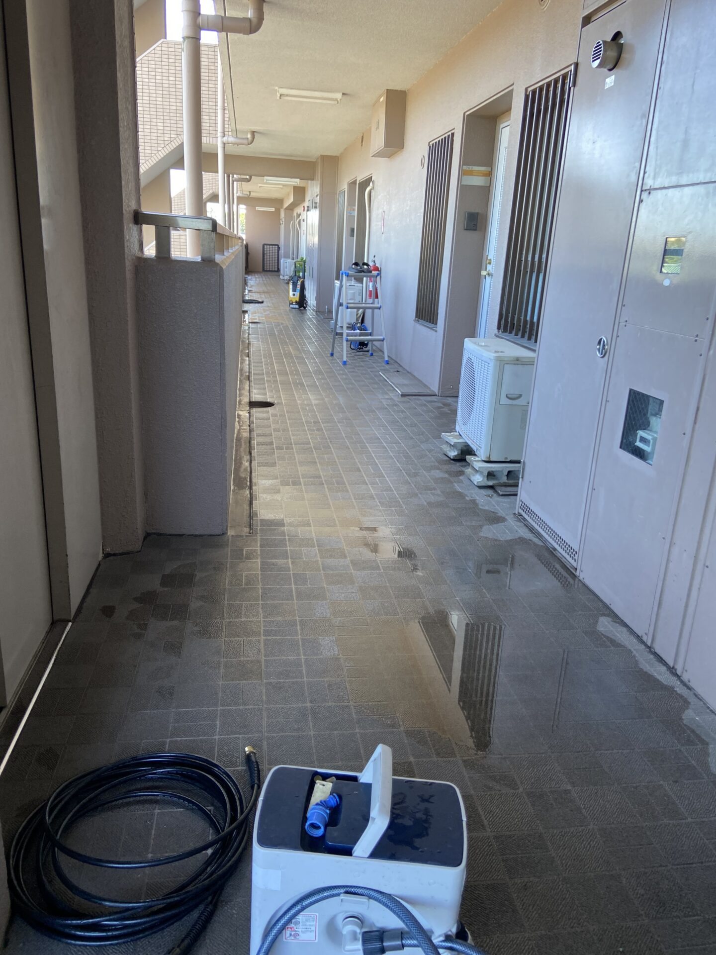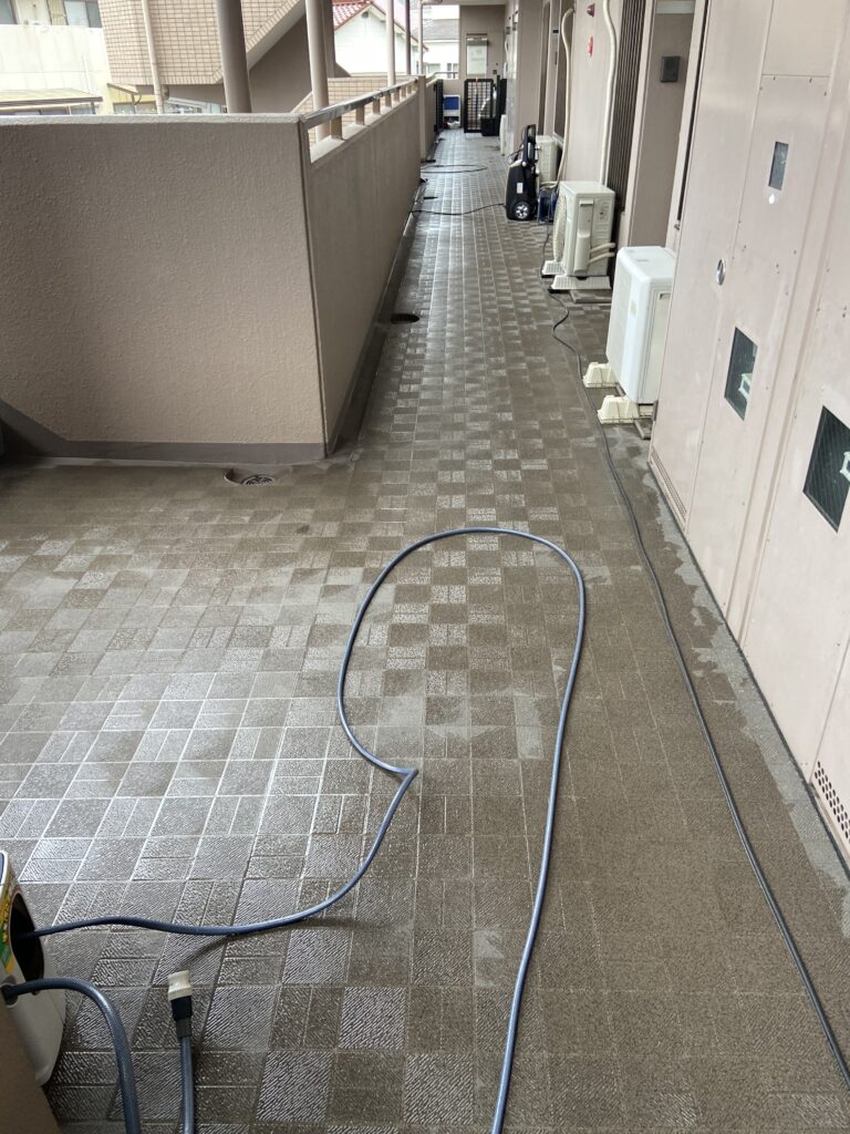 床の洗浄だけでなく壁面(廊下側)、手すり部分も洗浄しているのできれいになっていると思います。