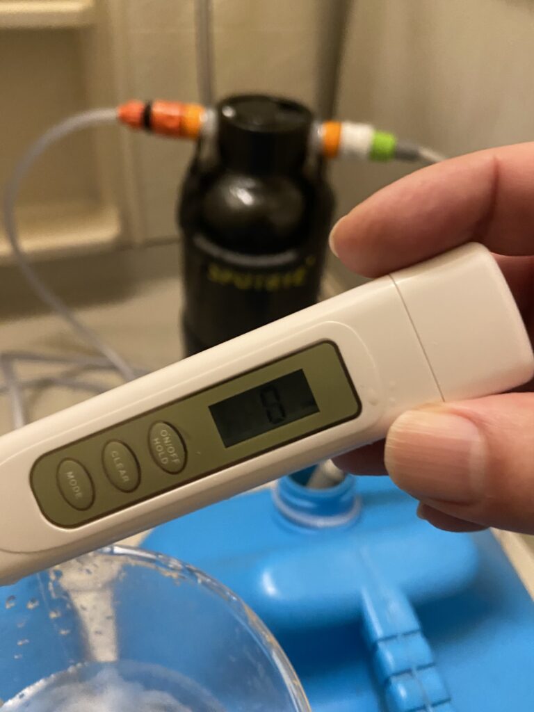 TDSメーターで水道水を測ると32でしたが濾過後は0となりました。