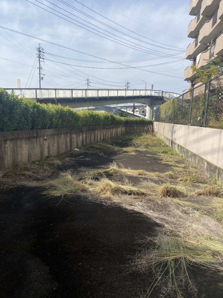 調整池は雨水を一時的に敷地内に溜めておき道路が冠水しないようにするためのものですが普段誰も足を踏み入れないので荒れ放題です。この30年で草が木と化しています。