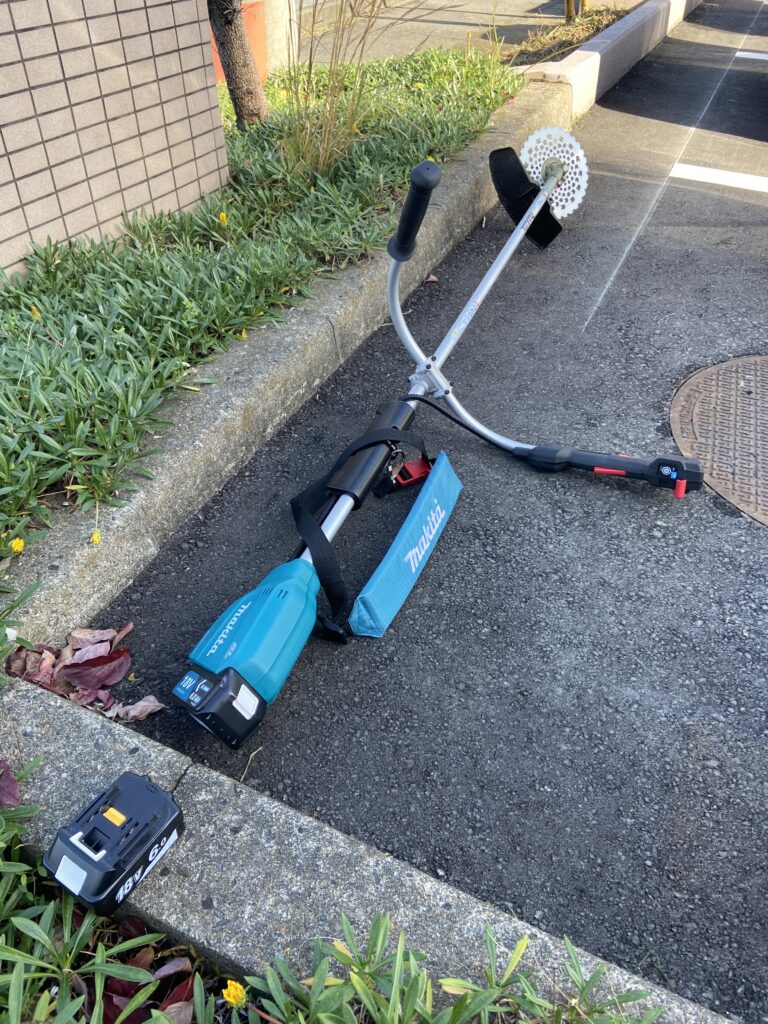 お次は先日の理事会にて購入許可を頂いた草刈り機マキタ号の登場です。まだ箱から出していなかったので早速説明書をみながら組立、完成したので早速試乗開始