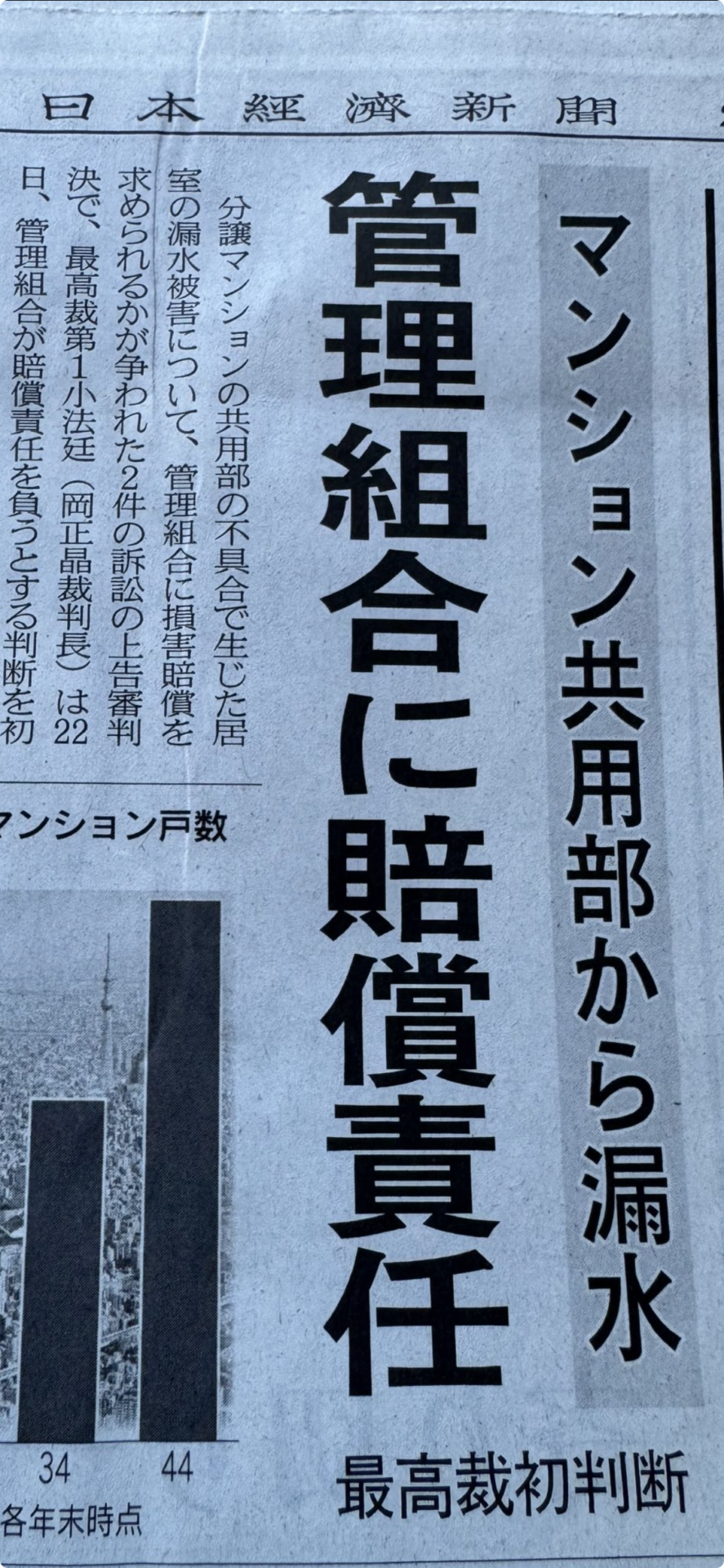 1/22最高裁第一小法廷(岡正晶裁判長)にて管理組合に賠償責任があると判断しました。