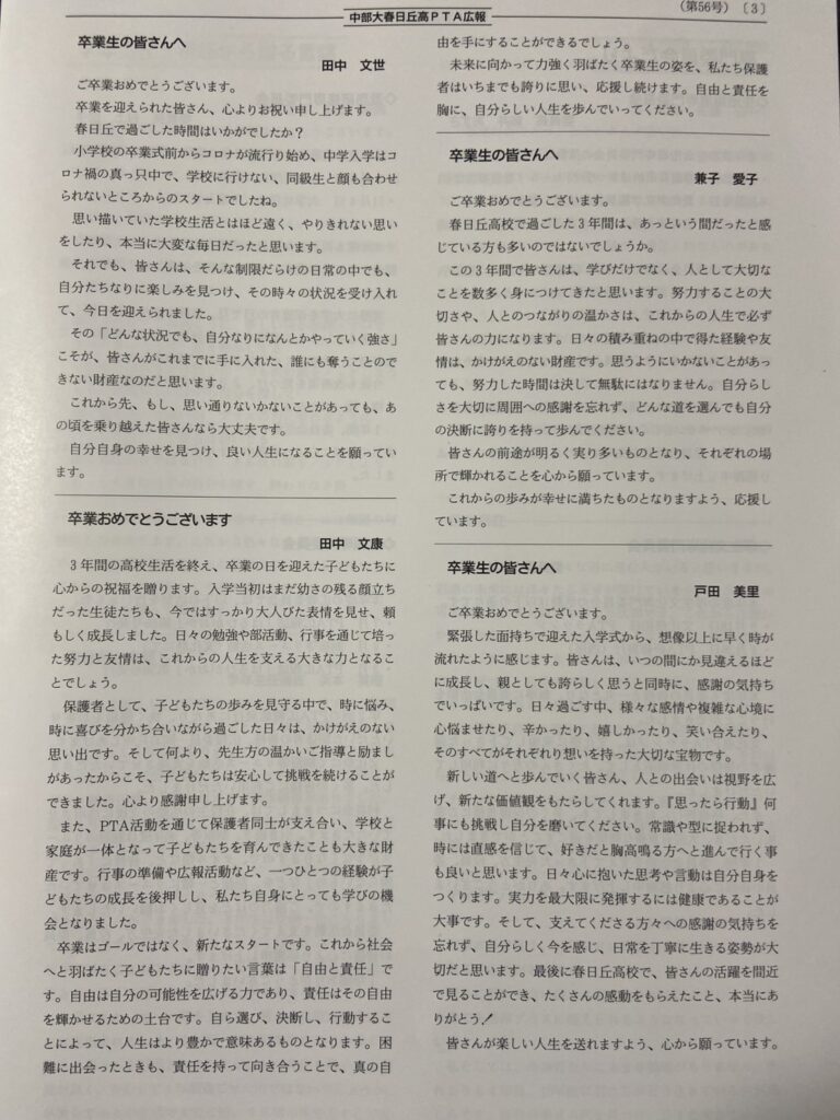 祝🎊卒業 投稿日 2026年3月12日 著者 管理者 カテゴリー 未分類 - シェア - ツイート - LINE 子供の高校の卒業式が2/28にありました。 526名の卒業生なので保護者は1名限定です。まあ、行かなくてもわかんない感じですね。 最近は女の子はティアラやバルーンやぬいぐるみなどをもらい記念写真を撮るのが今時なんですね PTAとして贈る言葉を載せさせていただきました 4月からは下の子のPTAがやってきます この記事を書いた人 管理者 記事一覧 Twitter Facebook Instagram LINE