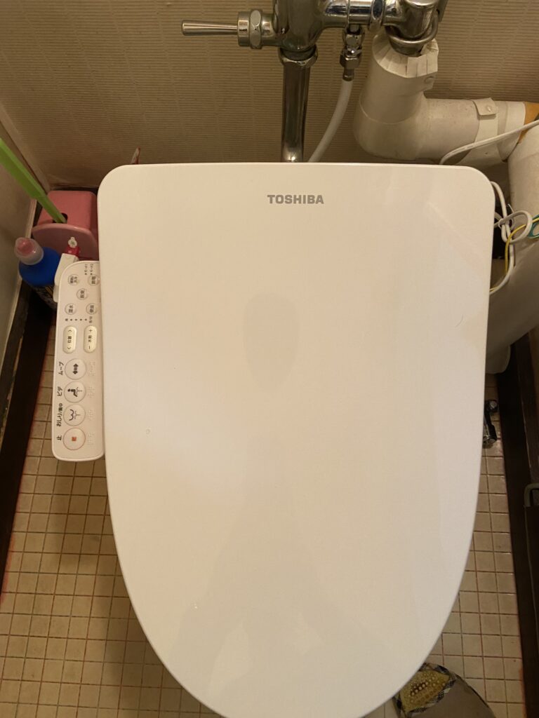 順調に温水便座の交換に取りかかりました。脱は問題なくできましたが水道管の繋ぎ手が用意していったものでは対応できなかったため急いで近くのホームセンターに調達に走りました